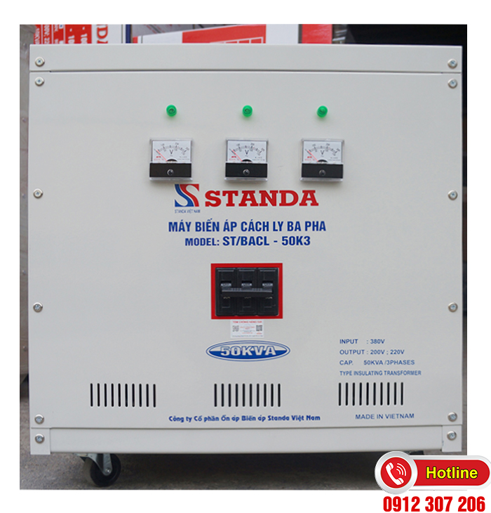 Biến áp 50kva dùng để đổi điện cho các thiết bị công nghiệp có điện áp sử dụng theo tiêu chuẩn của Nhật, Đài Loan, Mỹ, vv... Và các nhu cầu đặc biệt khác.