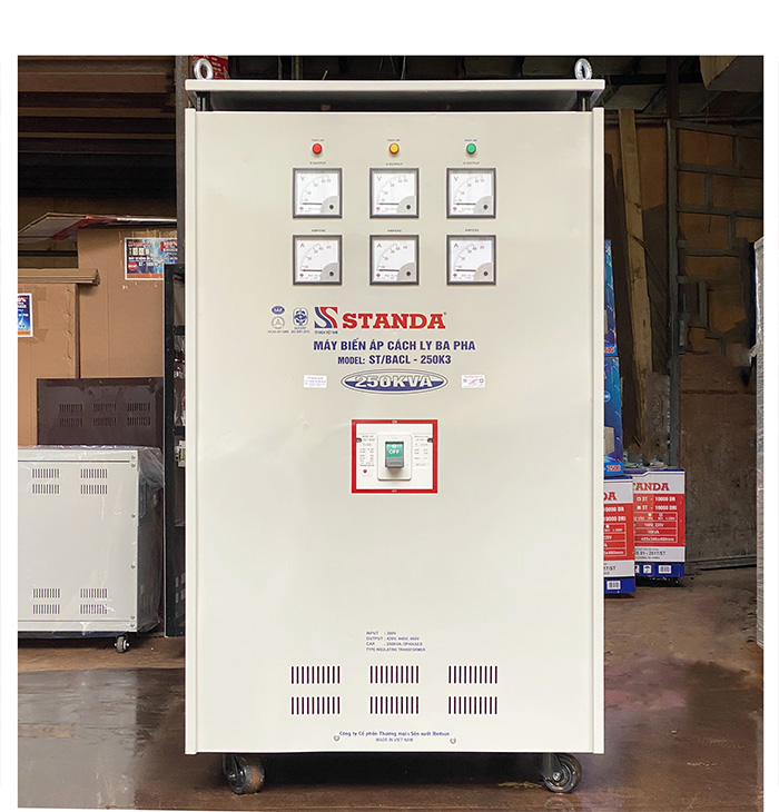 Biến áp cách ly Standa 250kVA tăng áp 380V lên 420v-440v-460v /3 pha (hàng đặt) chính hãng dùng để đổi nguồn điện 3 pha cho các thiết bị nhập khẩu từ nước ngoài.