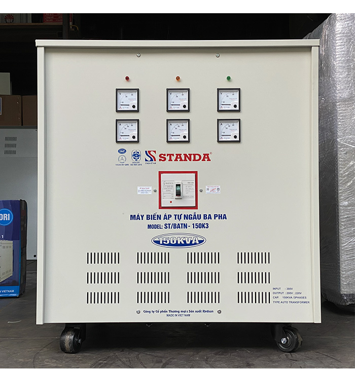 Biến Áp Standa 150kVA dùng để đổi điện cho các thiết bị dân dụng có điện áp sử dụng theo tiêu chuẩn của Nhật, Đài Loan, Mỹ... và các nhu cầu sử dụng đặc biệt khác.