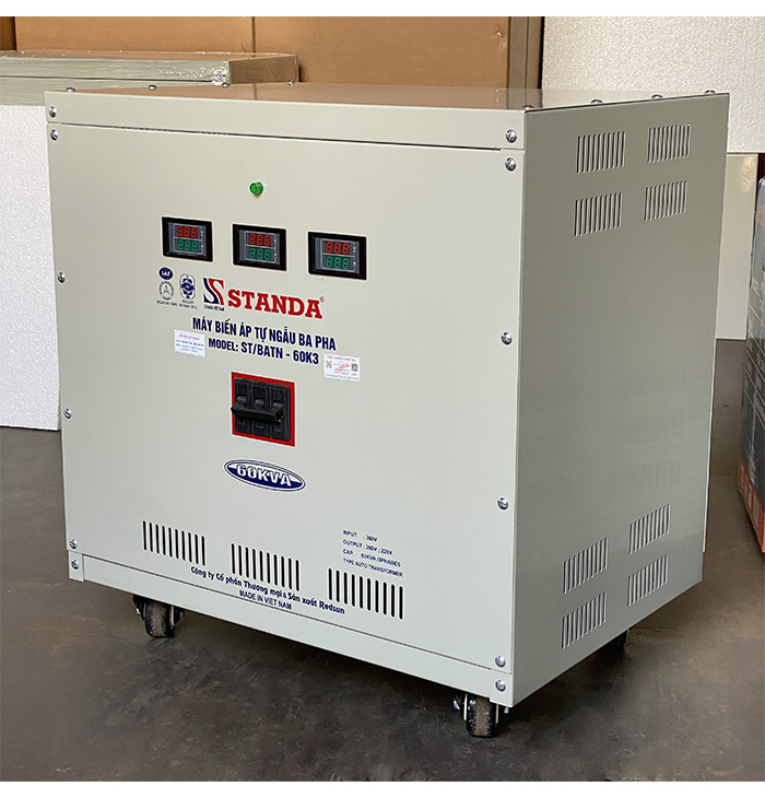 Biến áp Standa 60kVA hạ áp 380v ra 220v và 200v hàng chính hãng chất lượng cao nhất hiện nay. Máy có giá cao hơn loại dây nhôm là do giá vật tư dây đồng cao hơn dây nhôm.