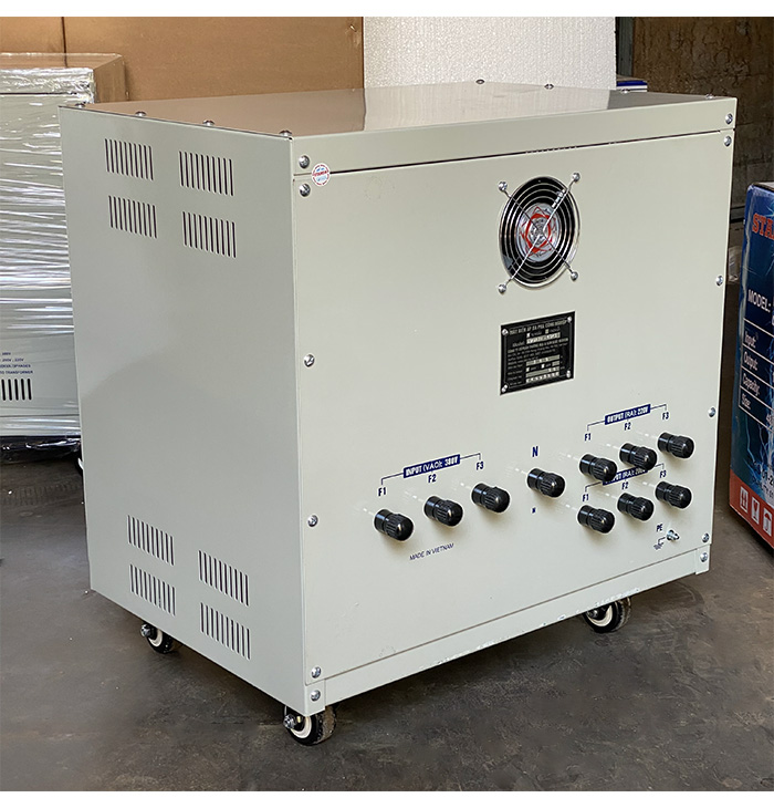 Máy biến áp 60kva 3 pha chỉ có duy nhất chức năng đổi nguồn, không có tính năng ổn định điện áp. Vì vậy chúng tôi khuyến cáo khách hàng khi muốn sử dụng thiết bị được tích hợp cả tính năng đổi nguồn và ổn áp, hãy sử dụng máy ổn áp Standa 3 pha, với giá thành chênh lệch không nhiều so với máy biến áp, trong khi tối ưu hơn rất nhiều