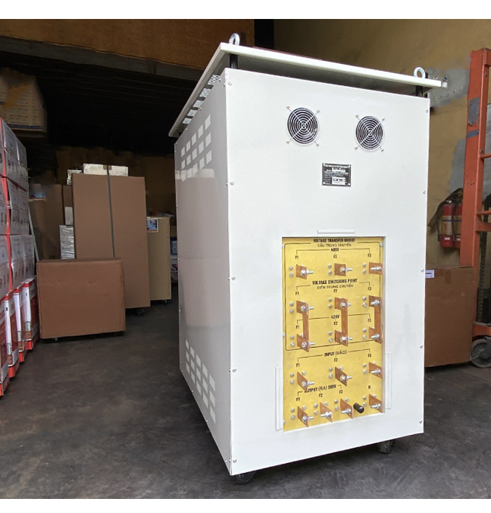 Bên cạnh đó các công ty Việt cũng có xu hướng nhập khẩu máy móc từ nước ngoài để đổi mới dây chuyền sản xuất, nâng cao năng suất và chất lượng sản phẩm. Do vậy cần có một thiết bị đổi nguồn từ 380v sang 220V /3p thì máy móc mới có thể hoạt động bình thường nhưng do điện lưới thực tế của khách hàng nên khách hàng đặt máy có đường vào và ra đặc biệt nêu trên .