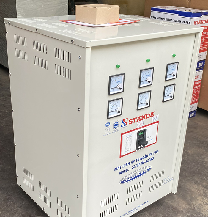 Biến áp tự ngẫu Standa 320kVA 3 pha chính hãng do Công ty Cổ phần Ổn áp Biến áp Standa Việt Nam ( Công ty Cổ phần Thương mại & Sản xuất Redsun) sản xuất được dùng để đổi nguồn điện 3 pha cho các thiết bị nhập khẩu từ nước ngoài.