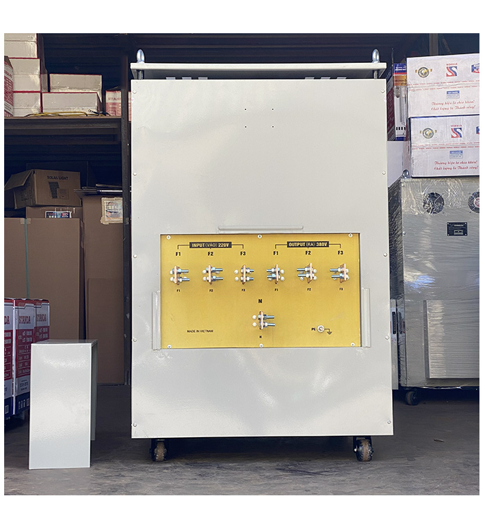 Bên cạnh đó các Công ty Việt cũng có xu hướng nhập khẩu máy móc từ nước ngoài để đổi mới dây chuyền sản xuất, nâng cao năng suất và chất lượng sản phẩm. Do vậy cần có một thiết bị đổi nguồn từ 380v sang 220V/3F hoặc 200V/3F thì máy móc mới có thể hoạt động bình thường.