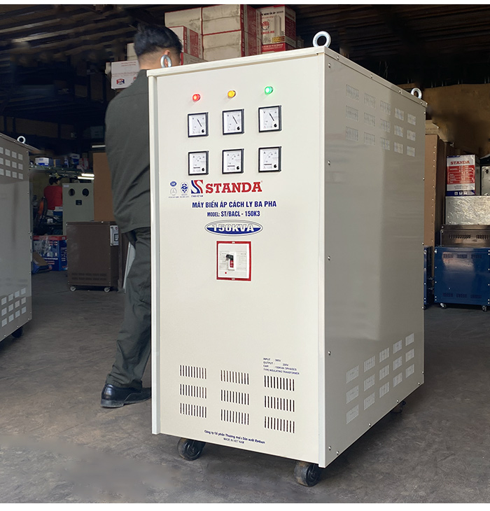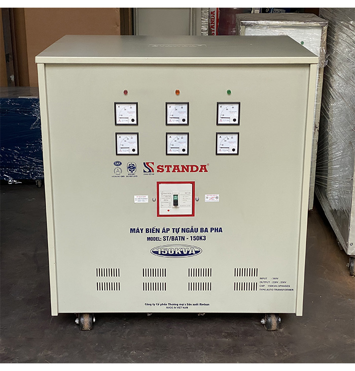 Bộ đổi nguồn tự ngẫu Standa 150kVA 3 pha 380V/220V/200V sản xuất theo tiêu chuẩn của hãng, không gây hao tốn điện năng, không bị mất dòng, đảm bảo nguồn điện ra 220V và 200V luôn đủ khi tải.